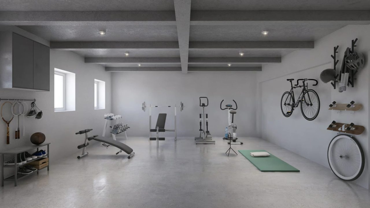 The flooring in a garage gym serves multiple purposes: