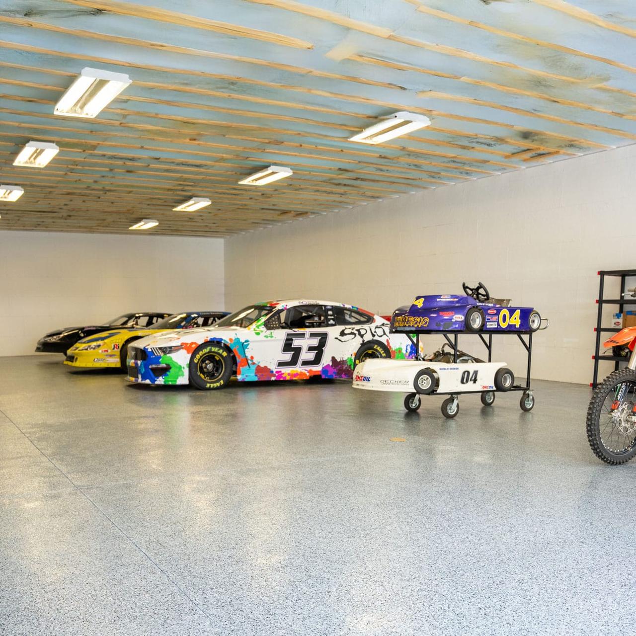 Decorative chip blends add light texture and help mask everyday dust and tire marks in the garage. Metallic pigments bring depth to basement rec rooms, and silica-textured topcoats add traction around pools and spa surrounds.